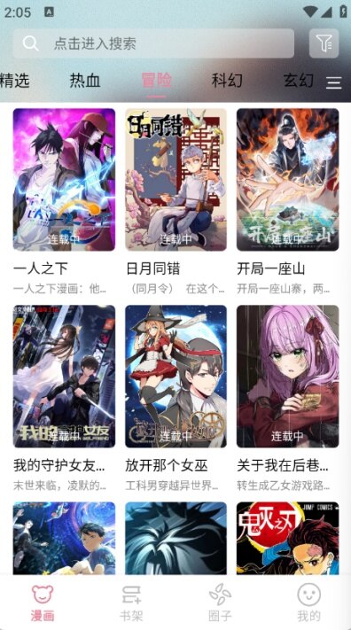 2、里面漫画类型特别全,精选、热血、冒险、科幻、玄幻这些常见的类型都有,不管你喜欢哪种风格,基本都能找到合心意的。