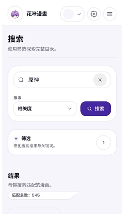 2、 点击页面搜索功能,输入漫画名称、作者等关键词,即可快速搜索到目标内容,精准高效。